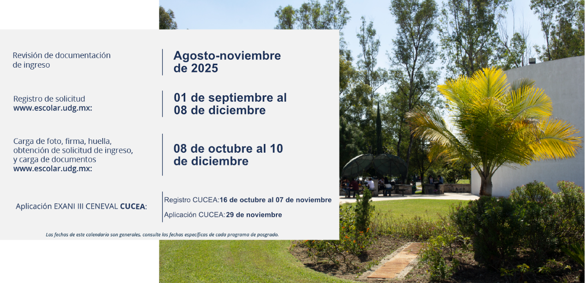 La Universidad de Guadalajara a través de los Posgrados CUCEA, ofrece programas académicos en las áreas administrativas, contables, económicas, educación, políticas públicas, negocios y sistemas, con el compromiso de brindar un servicio educativo de calidad respaldado por una planta académica especializada, profesional y de orientación en la investigación. La infraestructura del Centro Universitario de Ciencias Económico Administrativas (CUCEA), te permitirá un desarrollo integral para la formación académica y profesional.