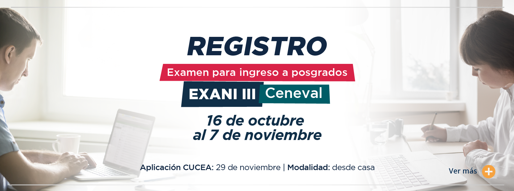 Le informamos que este registro es un proceso exclusivo del Centro Universitario de Ciencias Económico Administrativas, diseñado para el ingreso a Posgrados de la Universidad de Guadalajara. No es una aplicación nacional. El CENEVAL es ajeno a la UDG.